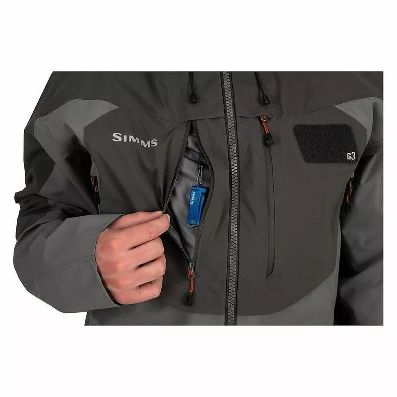 Lett og slitesterk 3-lags Gore-Tex jakke med fantastisk god komfort og pusteegenskaper. Denne nyheten for 2022 har en noe lengre og smalere passform enn tidligere G3 jakker og andre Simms modeller. Spesielt rundt armhulene noe som for de fleste vil bety at jakken sitter bedre og er langt mer behagelig både å kaste med samt at den vil fange mindre vind. Lengden og passformen gjør jakken vesentlig mer allround enn de fleste andre vadejakker (som normalt er en del kortere i lengden) for de som er ute etter ei skikkelig fiskejakke. Jakken er også justert ytterligere fra tidligere modeller med Gore-Tex stretch paneler som er strategisk plassert for best mulig mobilitet.